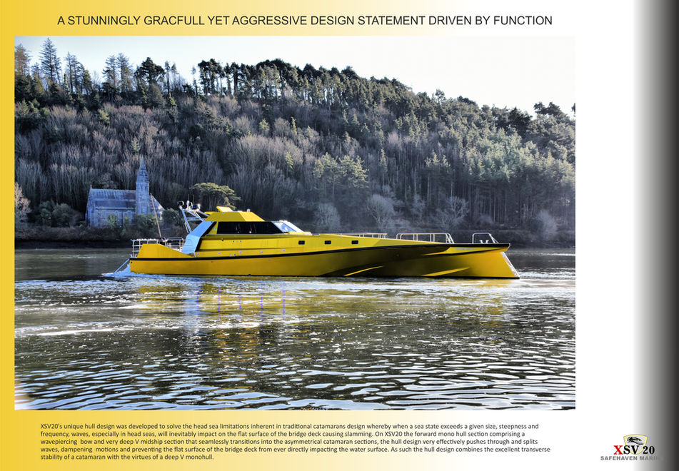 XSV20 can be powered by either surface drives or waterjets, the design has a maximum speed well over 50kts, a 40kts+ cruise speed and a range of 500nm.